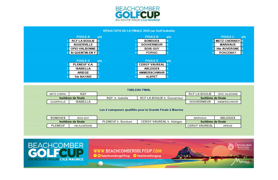La Grande Finale de la 6ème édition s’est déroulée du 6 au 9 juin 2025 au Paradis Golf Club (Maurice). Elle a réuni les 4 meilleures équipes de la Finale Nationale, accueillies au magnifique Dinarobin Beachcomber Golf Resort & Spa (5***** Luxe).